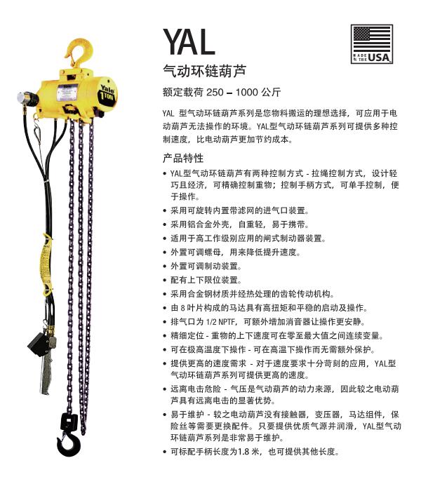 氣動葫蘆系類當前位置:主頁 > 產品展示 > 氣動葫蘆系類 > 耶魯氣動葫蘆YAL-01